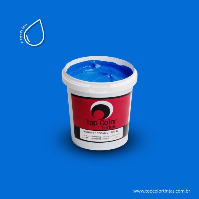 Olá amigos da serigrafia, tudo bem? Hoje trago nosso Hidrotop Cobertura Azul Royal, tinta com excelente cobertura, toque macio, de fácil manuseio. Indicada para aplicação direta em tecidos claros e escuros compostos por algodão, mistos ou sintéticos isentos de tratamento que impossibilite a ancoragem da tinta no tecido. Adquira nas melhores revendas de tintas do Brasil, ou entre em contato com a gente: +55 11 4241-1130