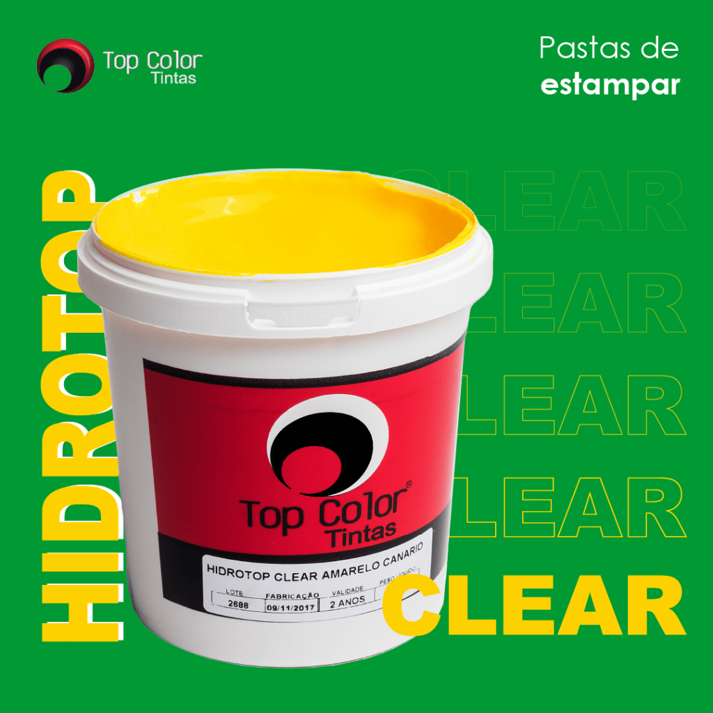 Essa linha de tintas serve para estampar tecidos de algodão, misto ou sintético nas cores claras, pois não possui cobertura. Em tecidos escuros aplicar a tinta Hidrotop super branco como base. Possui toque macio, excelente ancoragem e é cura ao ar.